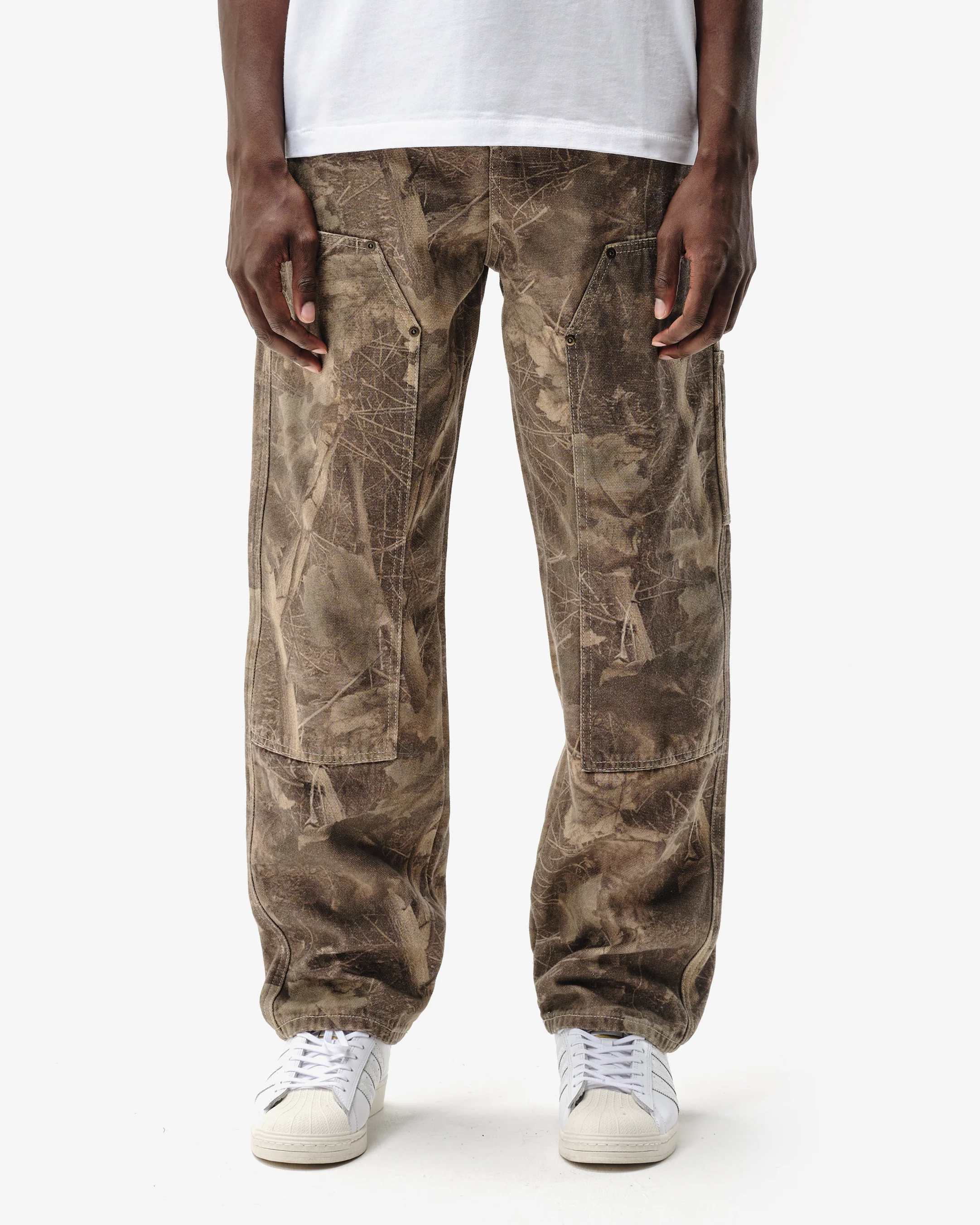 Cut straight and with a high waist fit,Ā inspired from classic workwear trousers of the past and designed to sit perfectly on top of any shoe.Ā Constructed from a custom heavy cotton canvas which is then printed, dyed and vintage washed.Ā Custom branded aged rivets and buttons throughout.Ā