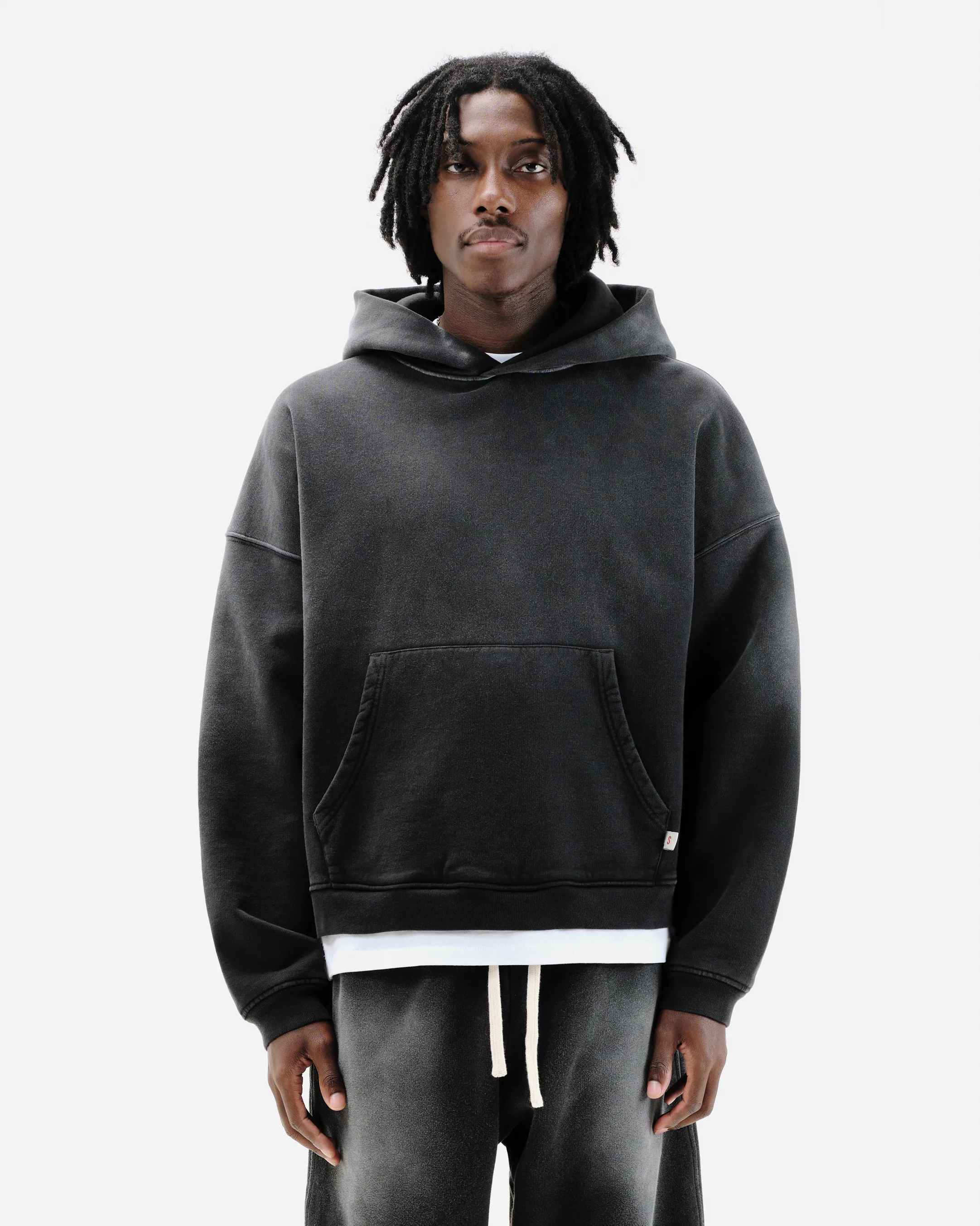 Over 9 months of development and sampling to create a brand new silhouette.Ā Inspired from 90's hoodies which are a wider cut in the body, cropped in length, looser in the waist and cuffs and have a unique fading created from years of wear.Ā These are cut in a custom American fleece at 500GSM with an oversized body, looser cuffs and waist for easy wearing and a one piece seamless hood.Ā Each piece is then hand treated in Portugal to create a sun faded look, every piece is unique from this process.Ā Finally every piece is finished with a vintage inspired side pocket tag and an internal neck tag explaining the design process of this item.Ā Ā